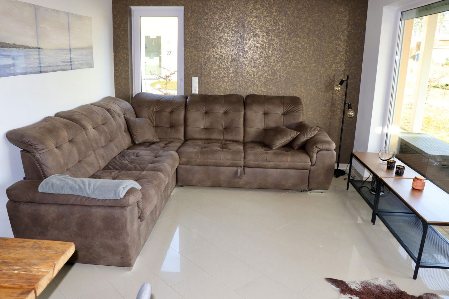 Alle Fenster des Hauses sind mit elektrischen Rollläden ausgestattet. Das ganze Haus wird über Fußbodenheizung beheizt, die Schlafzimmer sind mit Laminat versehen, alle anderen Räume sind gefliest. Im Haus finden Sie auch Waschmaschine, Trockner, Babybett und Kinderhochstuhl.