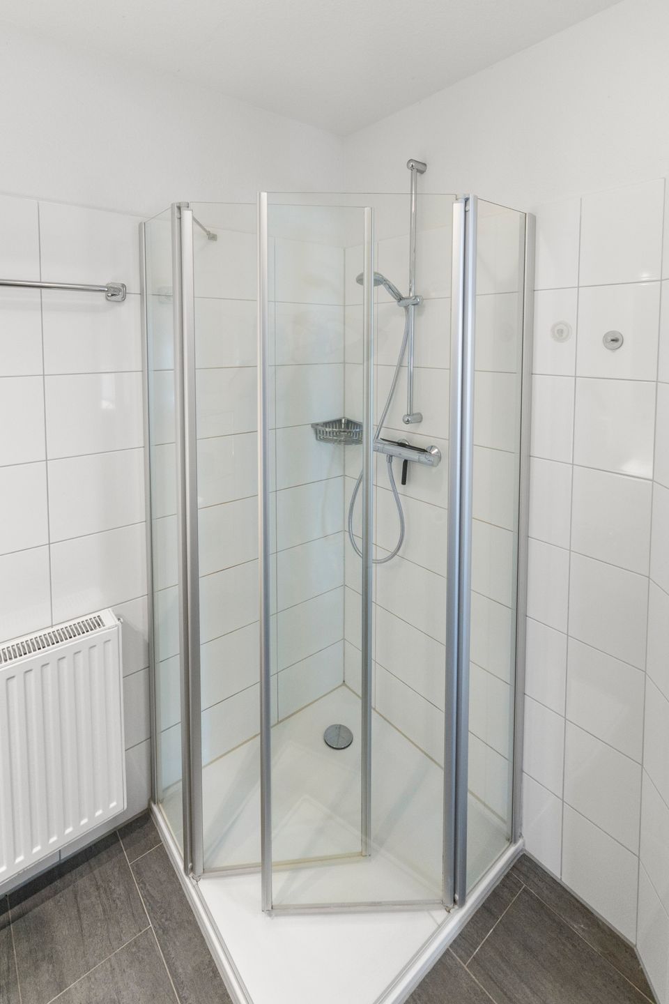 Der Wohn-/Essbereich und das Bad sind komplett gefliest und verfügen über eine angenehme Fußbodenerwärmung.