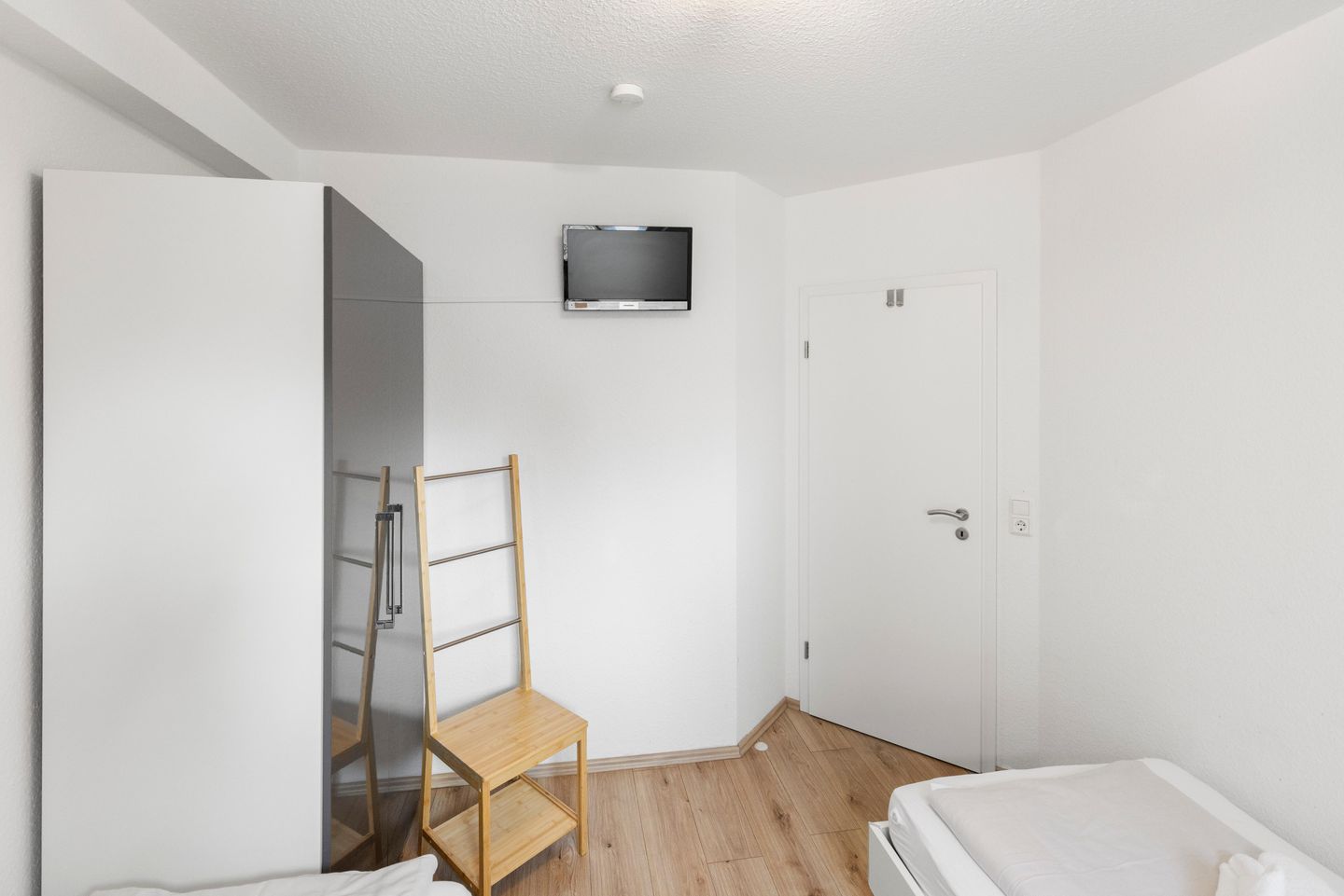 Es gibt zwei gemütliche Schlafzimmer (ein Doppelbett und Kleiderschrank) sowie (zwei Einzelbetten/Kleiderschrank und Fernseher). Die Lattenroste in den Betten sind höheneinstellbar.