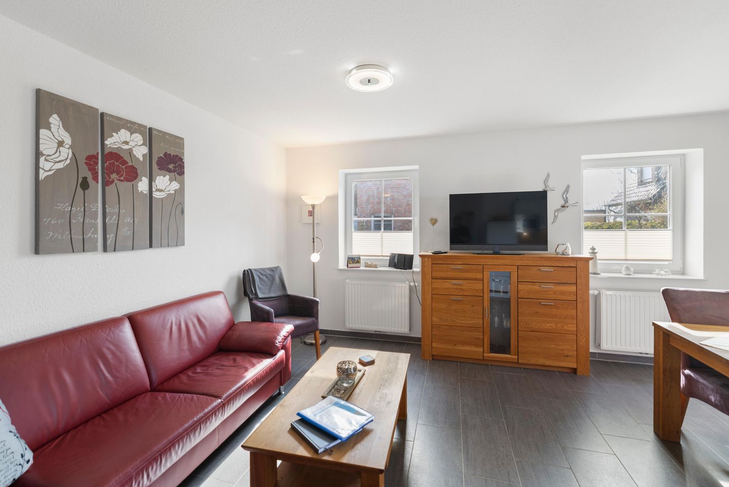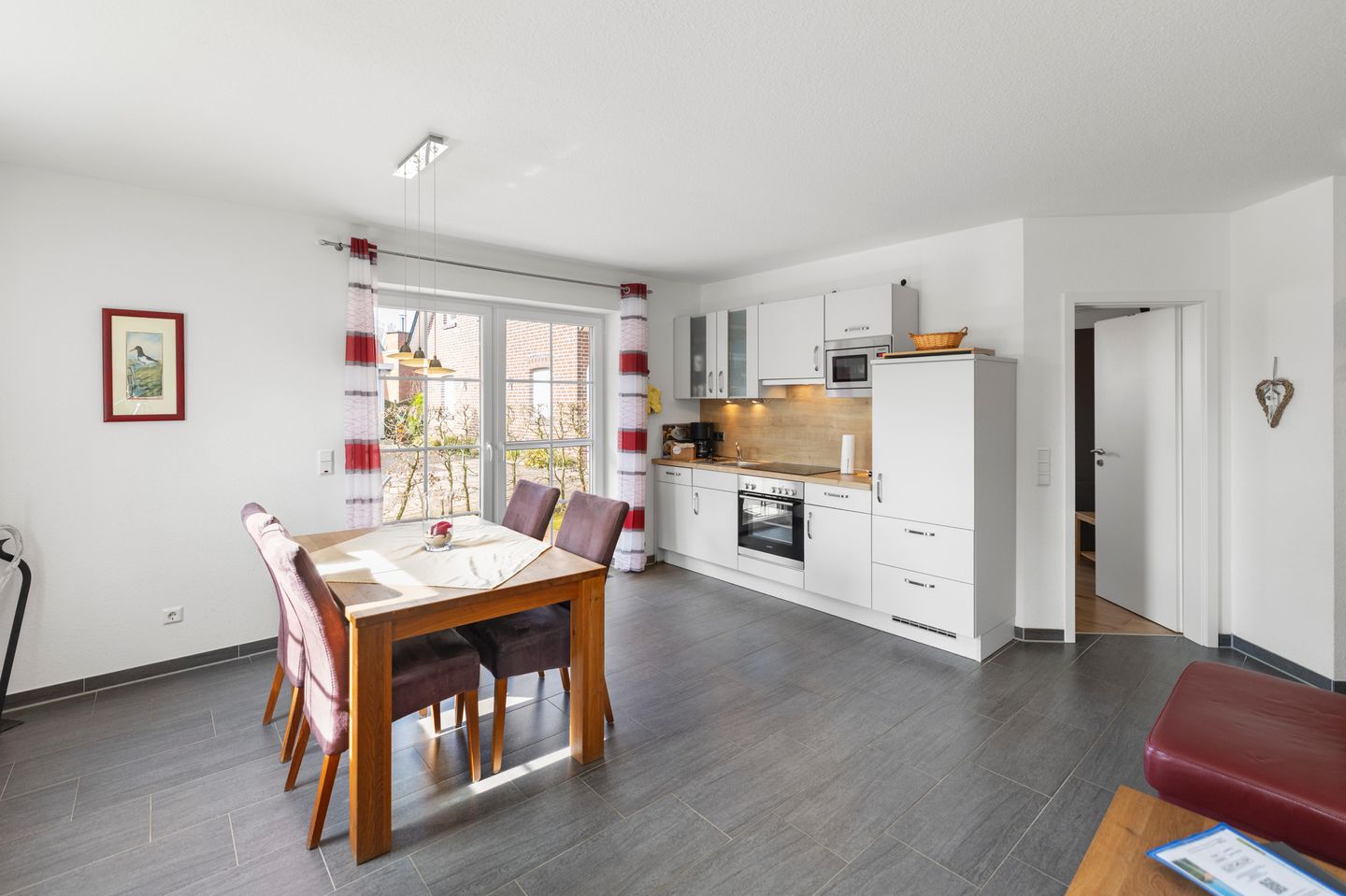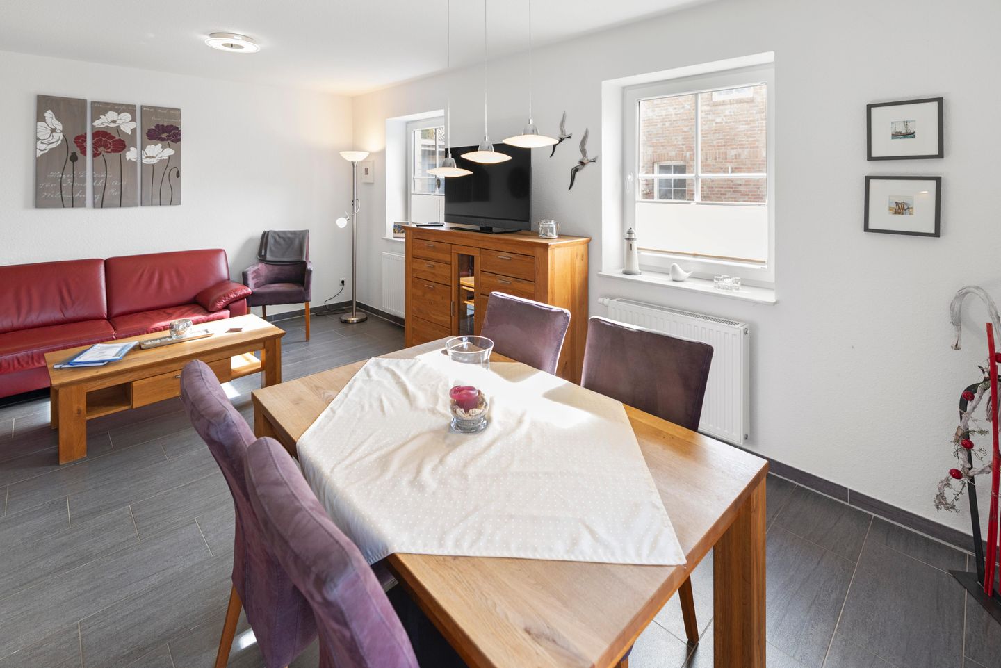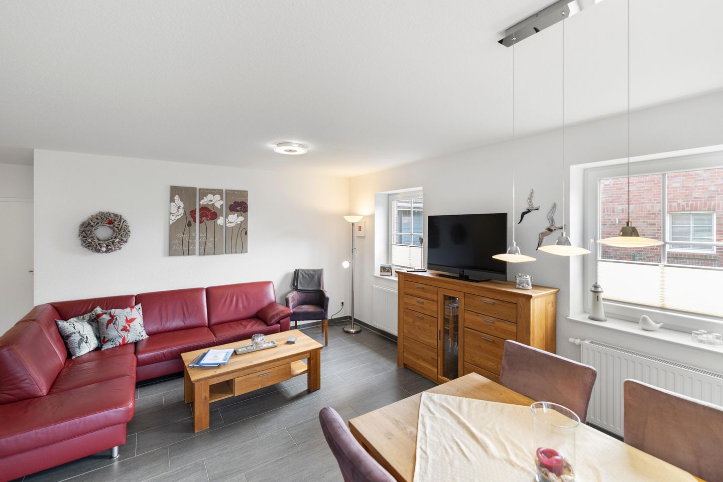 Die hochwertig eingerichtete EG-Ferienwohnung liegt in der Nähe der Zwillingsmühlen. Zum romantischen Krabbenkutterhafen sowie den vielen Geschäften und Restaurants sind es nur wenige Gehminuten.