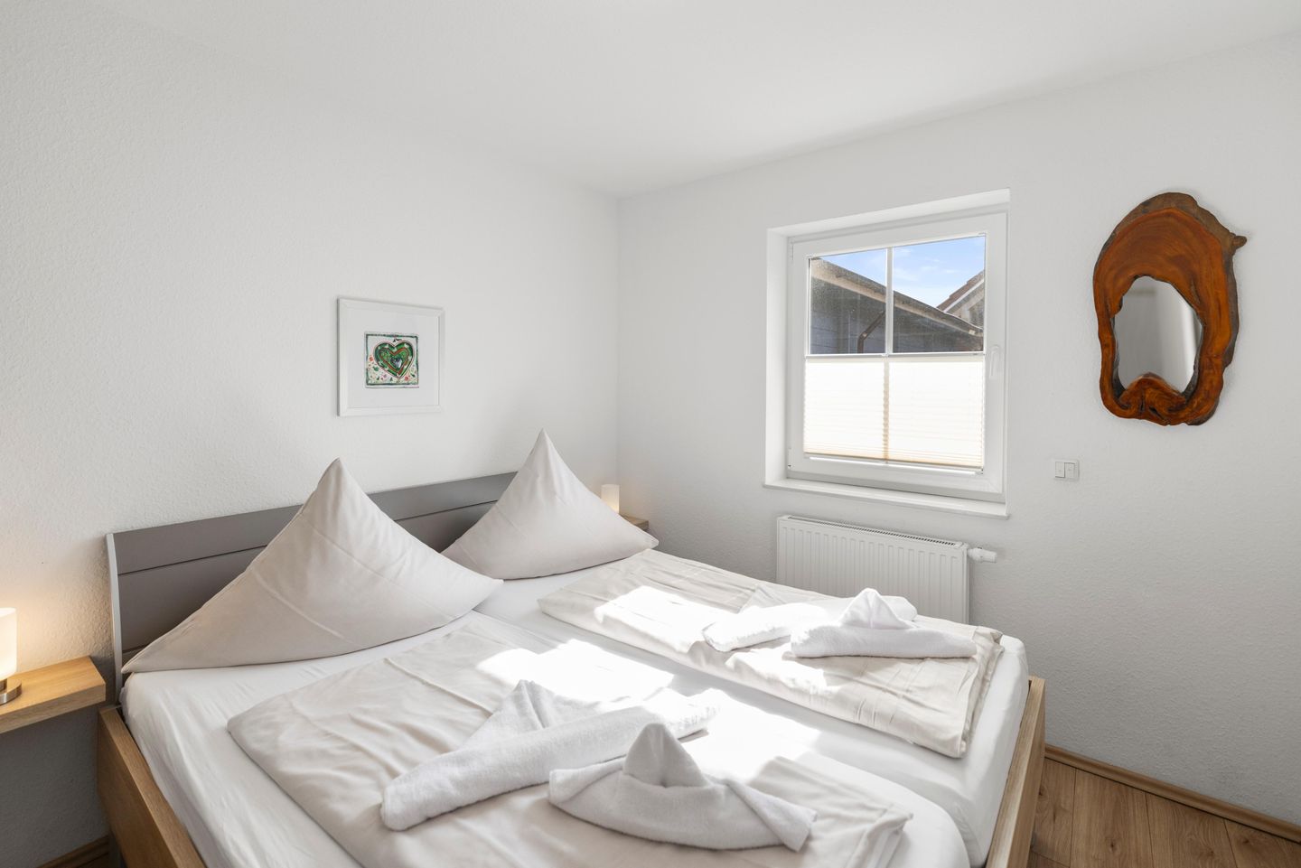 Die Schlafräume sind mit Laminat ausgelegt und verfügen über Außenjalousien.