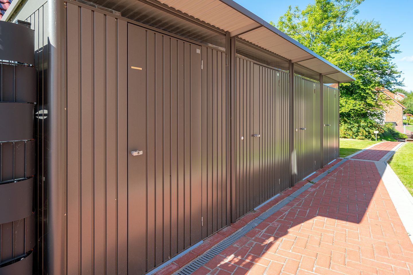 Zur Wohnung gehört ein PKW-Stellplatz vor dem Haus, eine Wallbox (gegen separate Bezahlung) ist auch vorhanden. Auch ein abschließbares Gartenhaus mit Stromanschluss für mitgebrachte Fahrräder steht zur Verfügung.