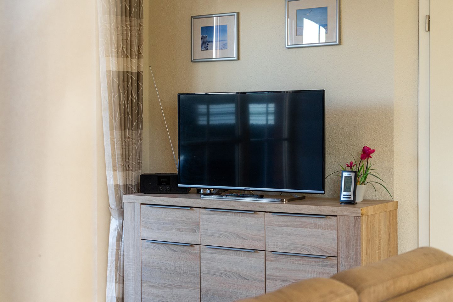 Der angrenzende Wohnbereich ist mit gemütlicher Eckcouch und neuester Unterhaltungselektronik, z.B. großer SAT-TV, Internetradio, USB ausgestattet. Spiele sorgen für gesellige Stunden.