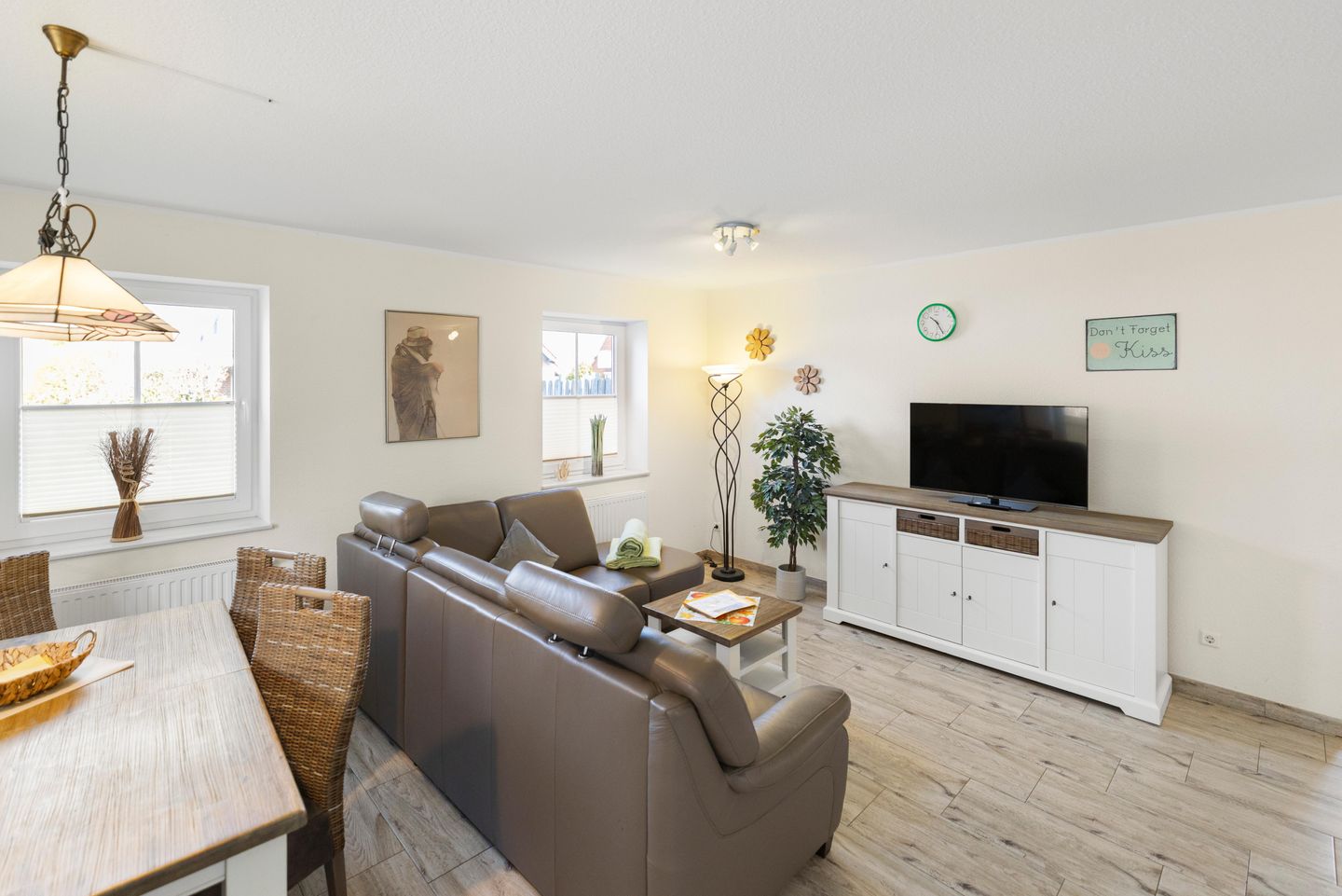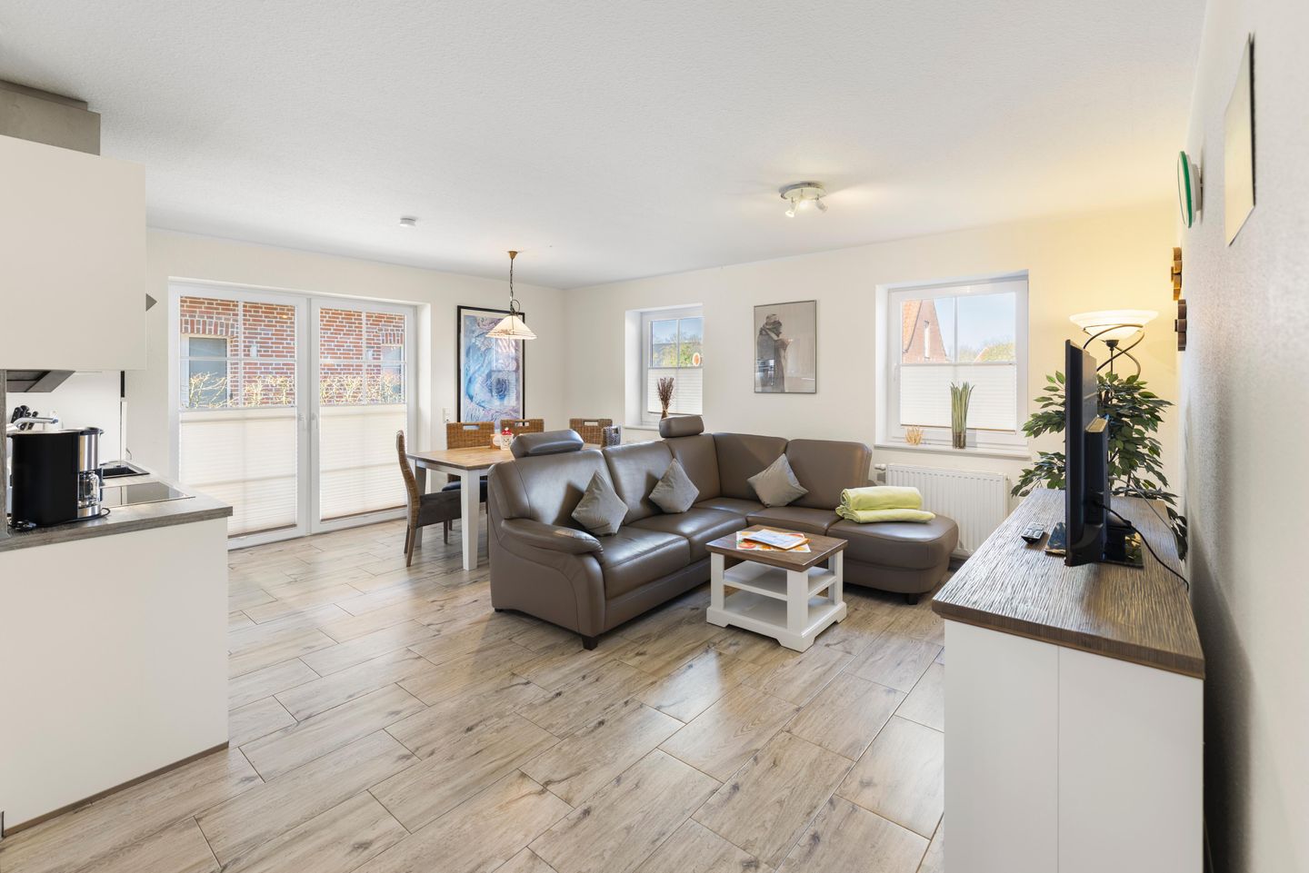 Die komplett geflieste Nichtraucherwohnung verfügt über einen schicken Wohn-/Essbereich mit Flachbild-TV. Im Wohn- Essbereich und im Bad gibt es eine angenehme Fußbodenerwärmung. In allen Räumen befinden sich Fliegengitter.