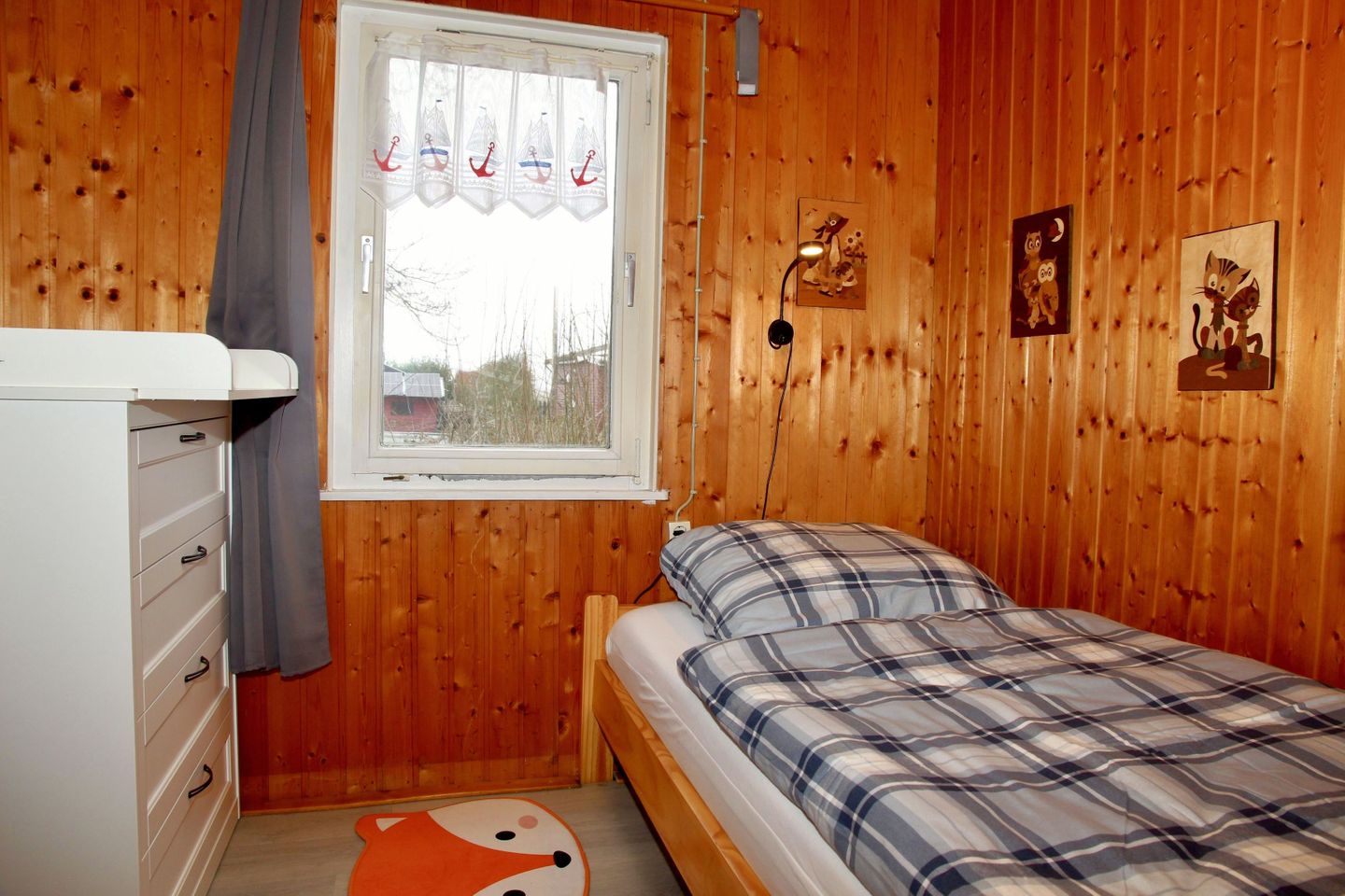 Die beiden weiteren Schlafzimmer sind jeweils mit einem Einzelbett (0,90 m x 2,00 m bzw. 0,90 m x 1,90 m) ausgestattet, eines der Zimmer verfügt zusätzlich über eine Wickelkommode und ein klappbares Babybett.
